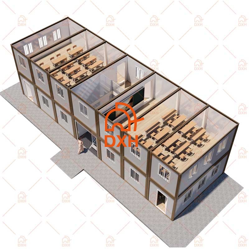 Τα επίπεδα σχολικά κτίρια κοντέινερ της DXH House παρέχουν έτοιμους προς χρήση χώρους μάθησης και γραφείων για μαθητές και εκπαιδευτικούς. Οι προκατασκευασμένες κατασκευές κοντέινερ μας εξαλείφουν τους χρονοβόρους κύκλους κατασκευής και τις διακοπές στο εργοτάξιο που σχετίζονται με τα παραδοσιακά κτίρια. Η DXH House προσφέρει δύο τυπικά μεγέθη σπιτιών κοντέινερ: 20 πόδια ή 40 πόδια, και προσφέρουμε επίσης προσαρμόσιμες διατάξεις κοντέινερ. Η δέσμευσή μας για την παροχή υπηρεσιών είναι να σας παρέχουμε ένα γρήγορα αναπτυσσόμενο, ανθεκτικό και υψηλής ποιότητας αρθρωτό σχολικό κτίριο κοντέινερ.